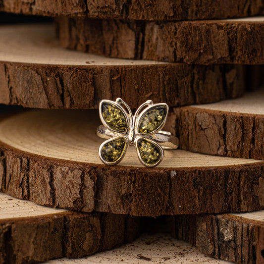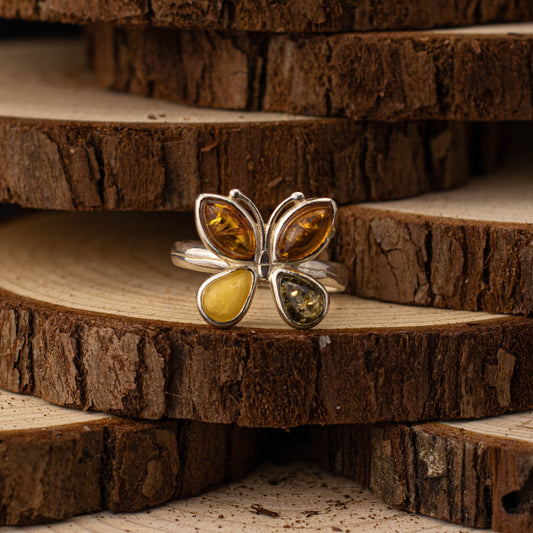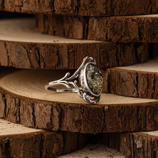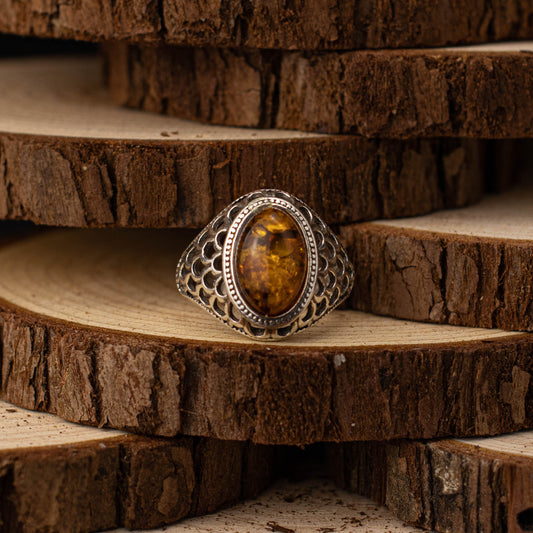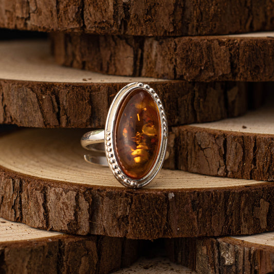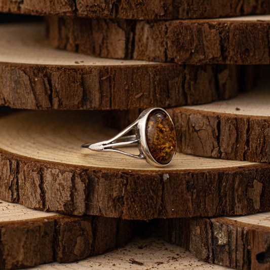 Frozen Amber Ring in 925 Sterling Silver with Amber