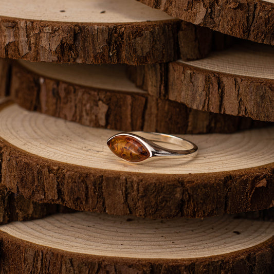 Sunlit Trails Ring in 925 Sterling Silver with Amber