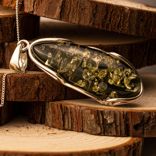 Mystic Amber Pendant in 925 Sterling Silver with Amber
