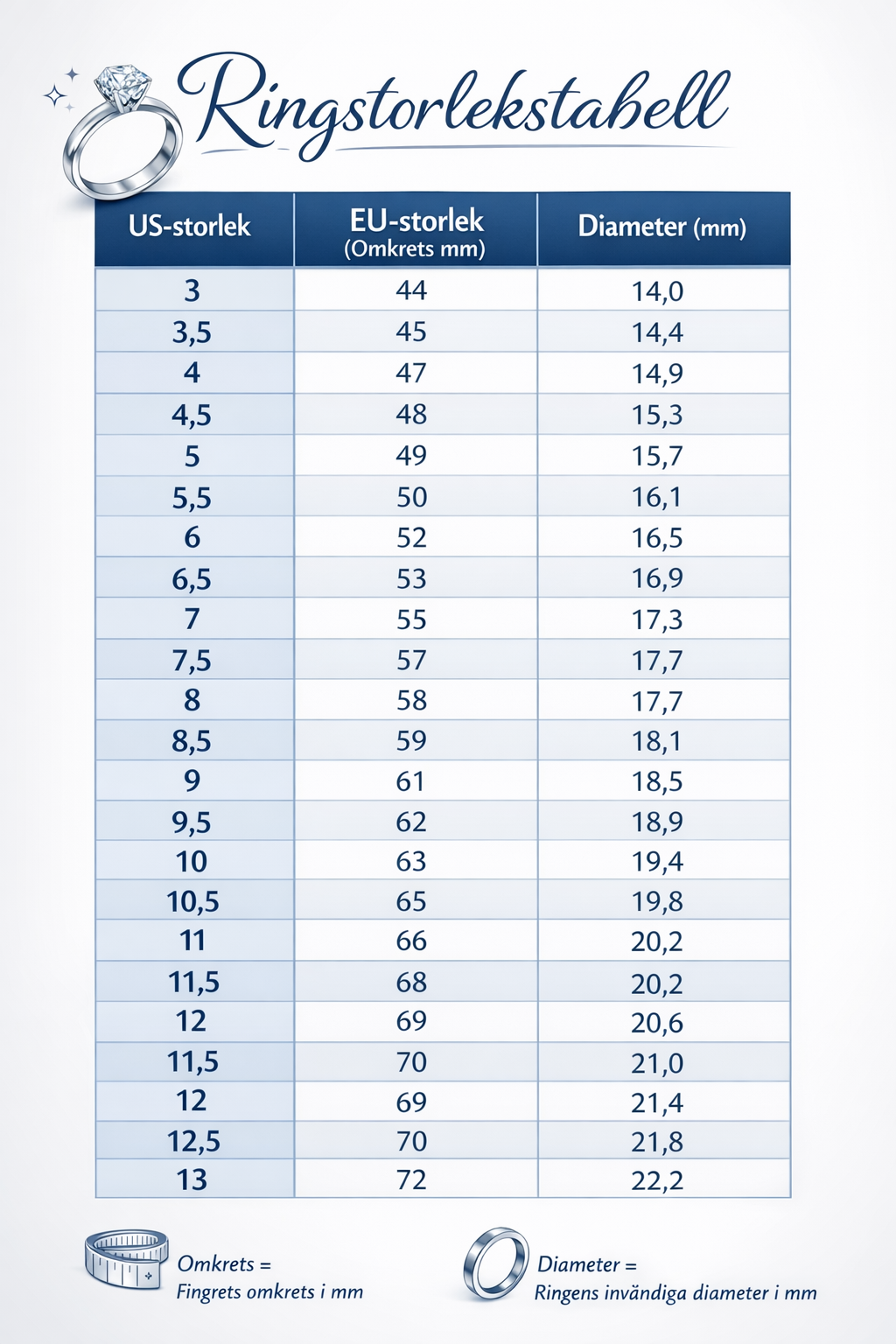 - Compare the measurement in millimeters with a ring size chart.