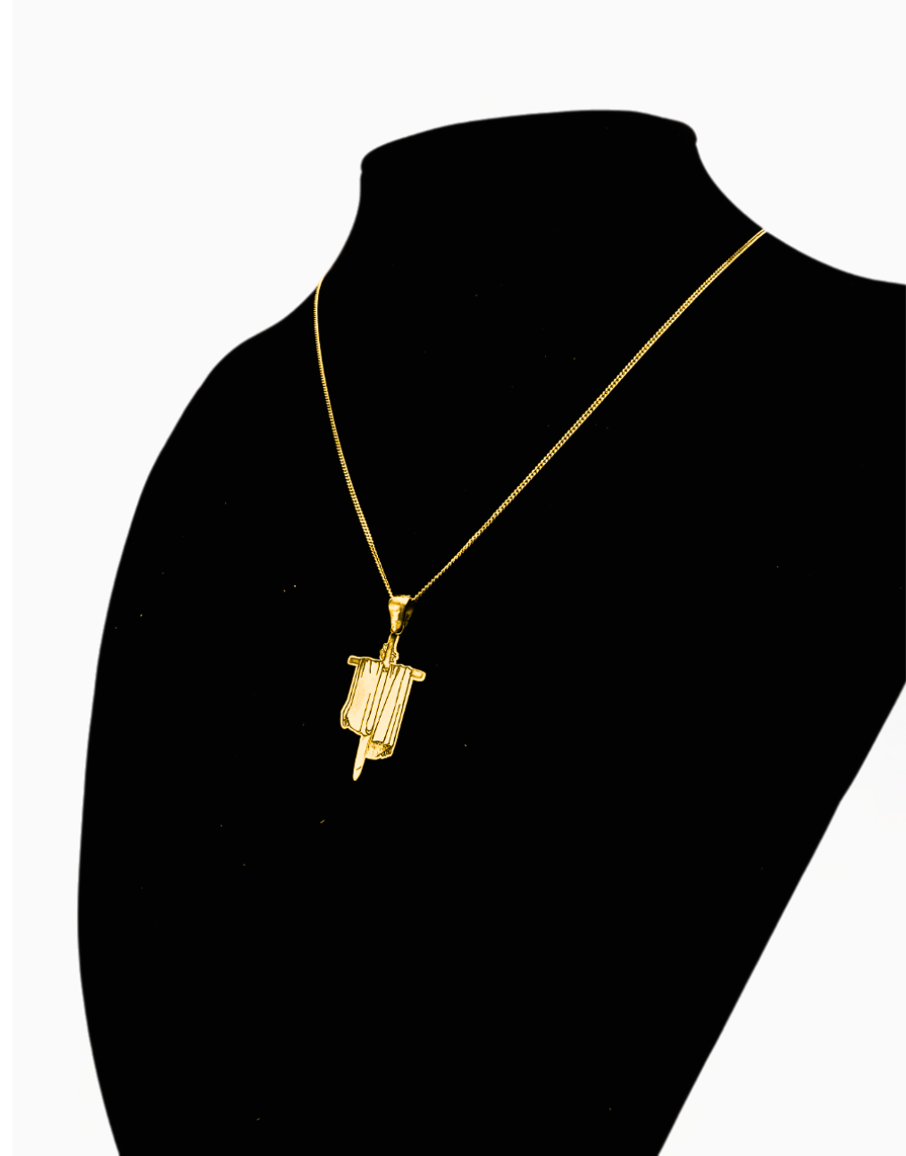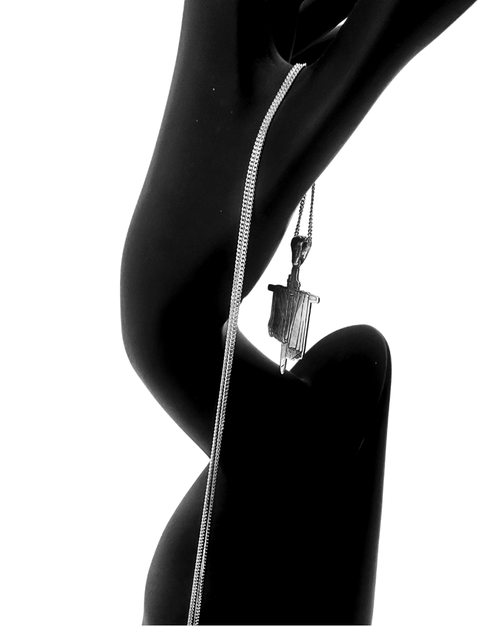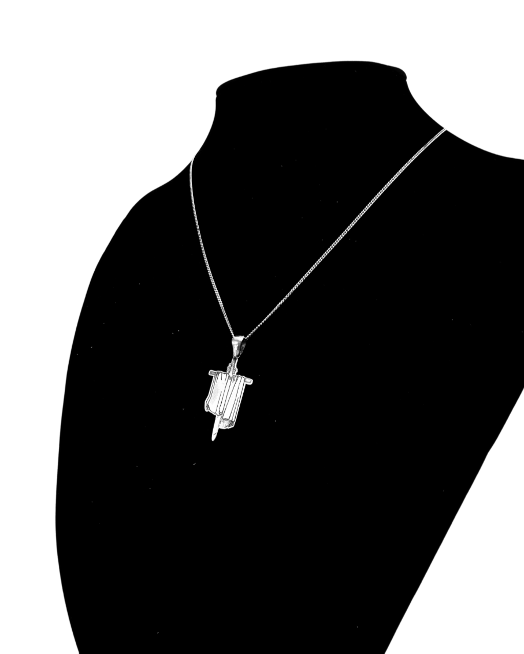 Hänget består av en stiliserad Darfash med rena linjer och en polerad yta. Den enkla designen ger en modern och personlig känsla.