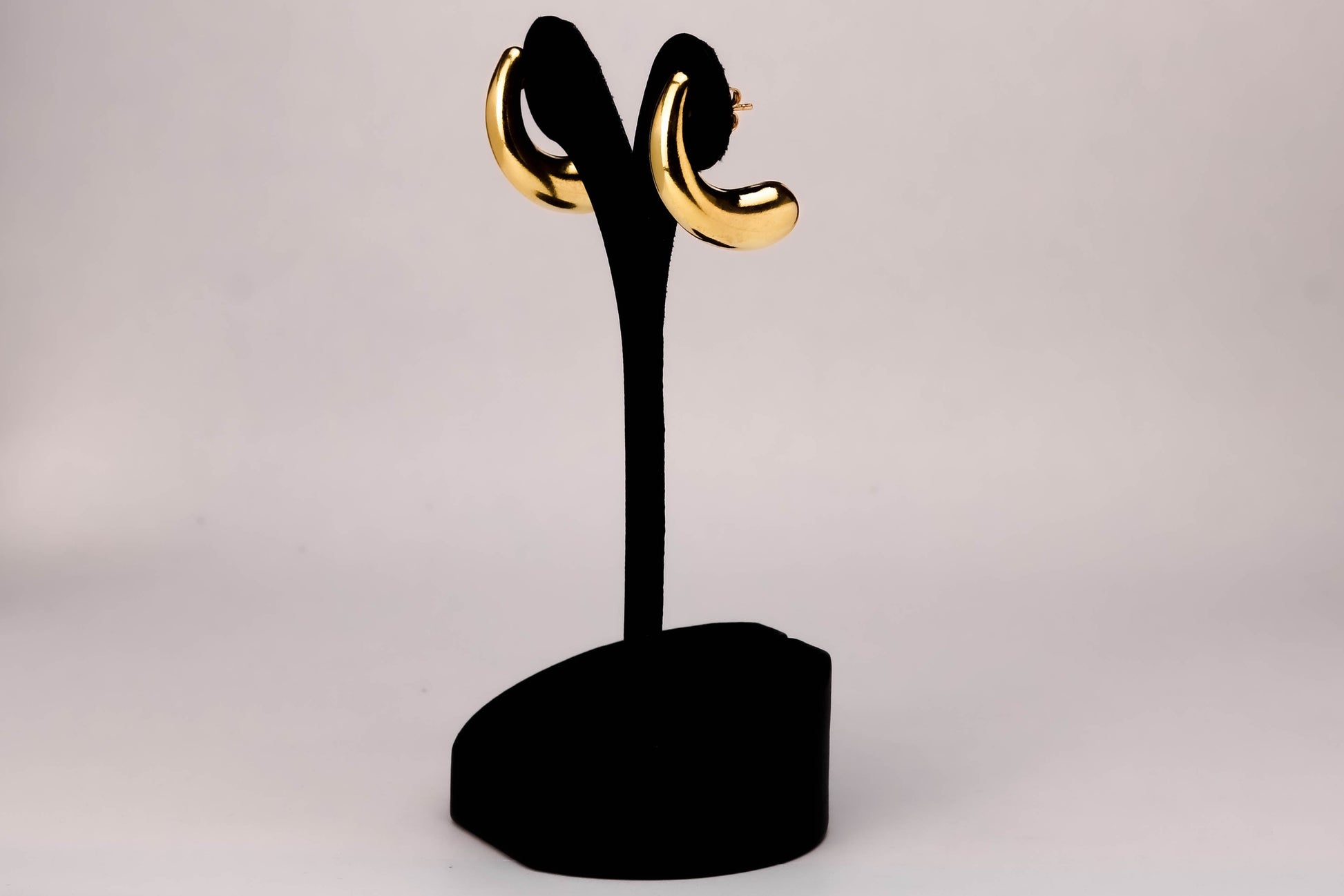Örhängena presenteras i en elegant smyckesask, vilket framhäver deras glänsande yta och sofistikerade design.