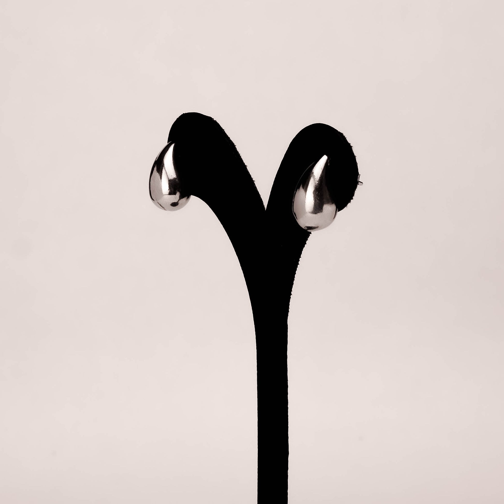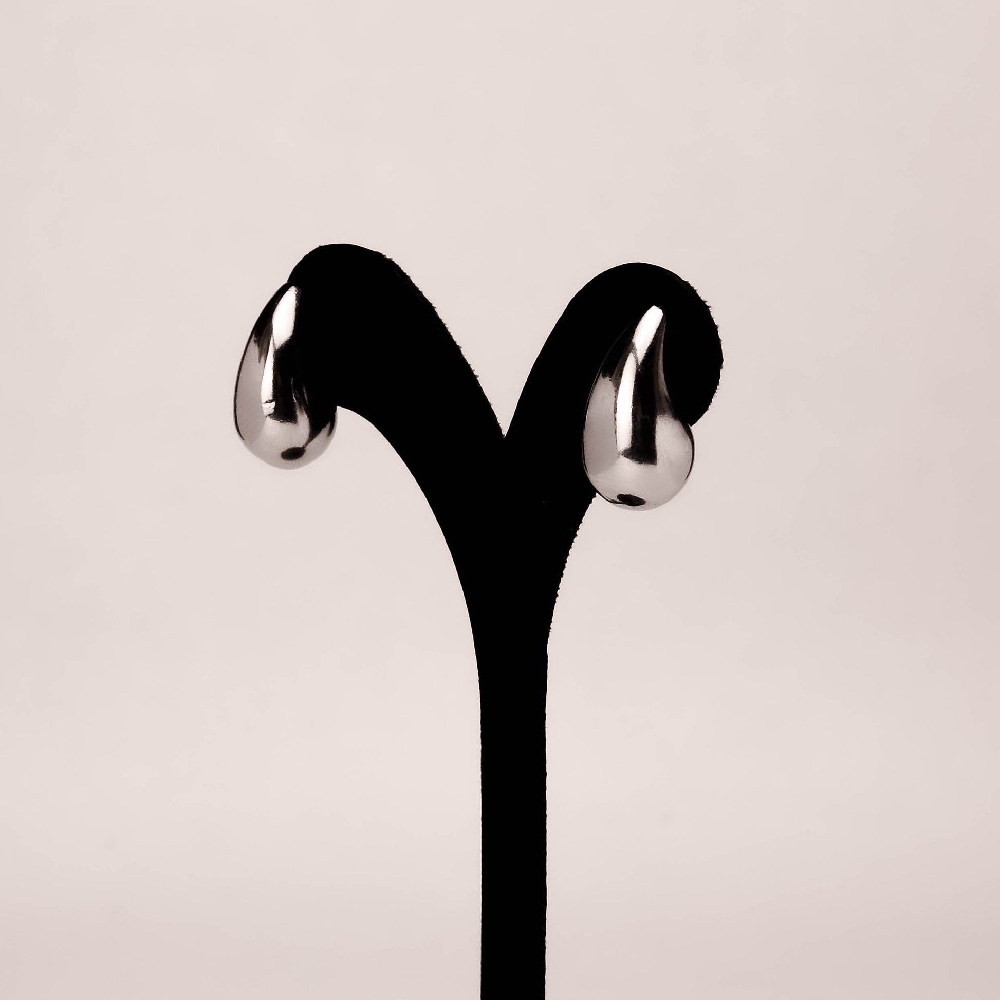 Luna Silverörhängen presenterade i en elegant smyckesask, där deras glänsande yta reflekterar ljuset och skapar en sofistikerad känsla.